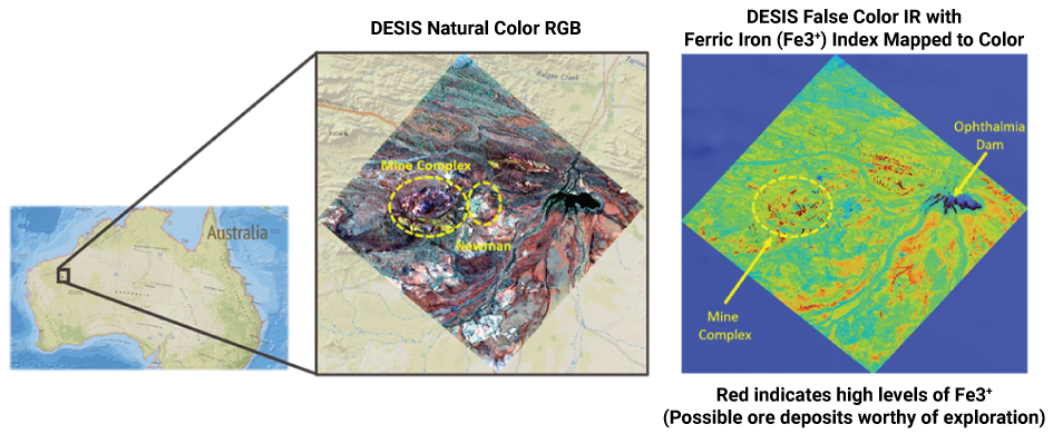 Hyperspectral imagery is a valuable asset in resource exploration and environmental monitoring. It enables the detection and mapping of surface indicators of mineral resources, allowing geolocated areas of interest to be identified for targeted sampling and further analysis. When integrated with lidar data, hyperspectral imagery can also be used to map spoil and estimate volumes of spoil or raw material stockpiles. Additionally, it supports efforts to monitor ecological impacts and evaluate the effectiveness of mitigation strategies, while helping ensure regulatory compliance—particularly in cases involving mining spoil or petroleum-contaminated soils.